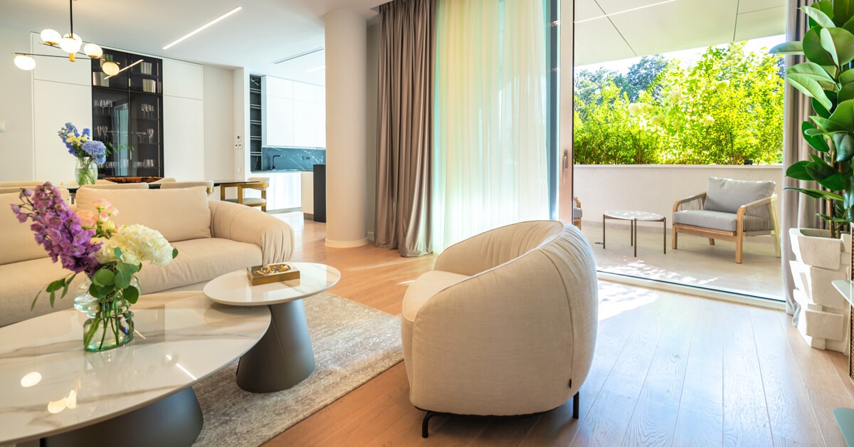 Faptul că aceste apartamente sunt concepute pentru închiriere pe termen mediu și lung influențează direct felul în care sunt proiectate interioarele. Accentul cade pe materiale naturale, proporții echilibrate și o paletă cromatică neutră, gândită pentru utilizare îndelungată, nu pentru un impact vizual imediat. Este aceeași abordare întâlnită în proiecte premium din Londra sau Paris, unde locuințele destinate închirierii sunt proiectate să reziste în timp, atât din punct de vedere estetic, cât și funcțional.